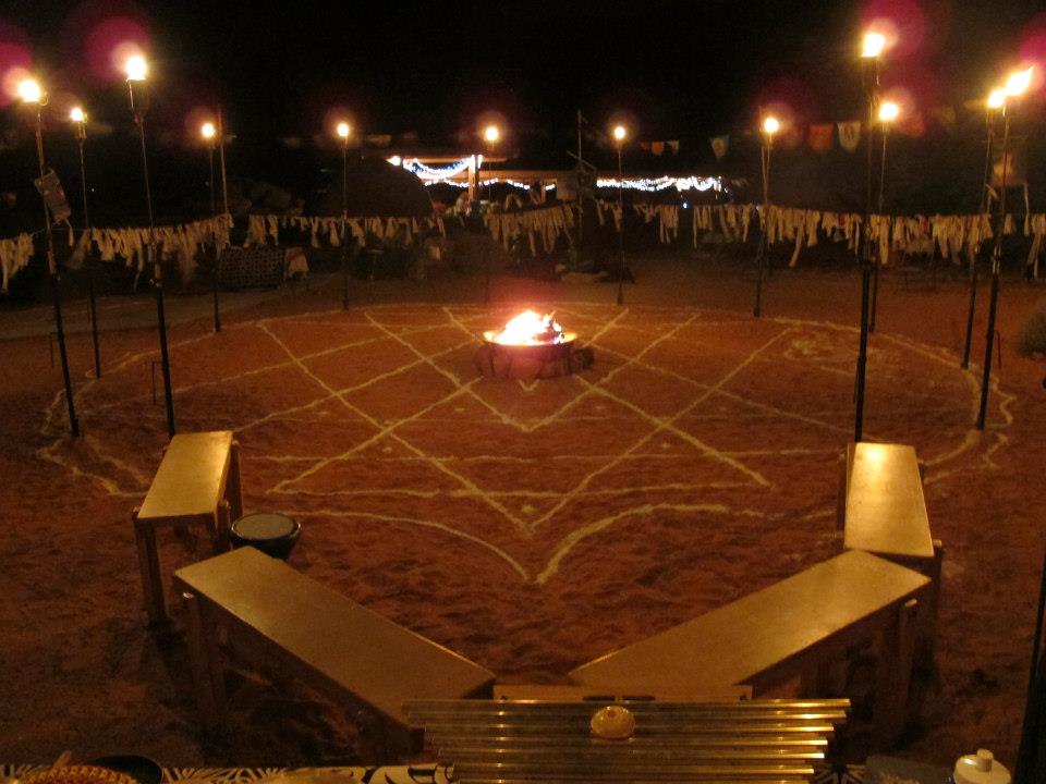 Fire — Salamander. The element of Fire symbolizes the dynamic aspects of our ritual. Elements of Fire include drumming, dancing, energy work, sexual alchemy, breathing and tantra dance, purification through the flame. It is suggested that drummers playing similar sized instruments stand close to each other, so they can hear each other, placing the djuns and other large bass drums near the center of the drummers “V.” Like an alchemist, keep an even feed to the fire. After an energy crescendo, we keep rattling to maintain the fire’s energy, until something happens — a prayer, a song, a poem, etc. Then we support whatever happens next… The only exception is holy silence. We keep an even flame and remain aware to vent out and shift energy when needed. Preparing fire wood, feeding the fire, checking on torches are all ways to be of service.